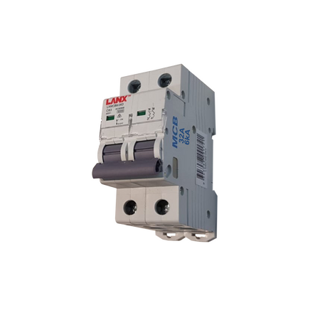 LANX 32A two phase circuit breaker with 6KA C curve and double pole—ideal for residential and commercial electrical systems. Built for reliable circuit protection, with easy installation and robust design.