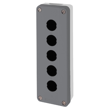 Alternatively Known As: 5 button control station enclosure, push button control box, Clipsal empty control box, SCHXALD05H7 enclosure, industrial control box