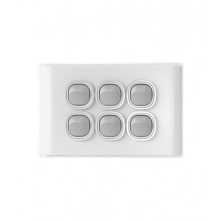 6 Gang Horizontal Switch | 16AX/20A 250V | White Cover & Grid by Trader