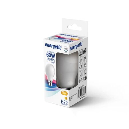 - Standard A60 bulb shape with B22 bayonet base