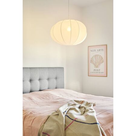 Aeron 60 pendant light with E27 base and dimmable feature—ideal for bedrooms and living rooms. Built for soft, ambient lighting, with elegant white fabric design and 2m cable for flexible installation.