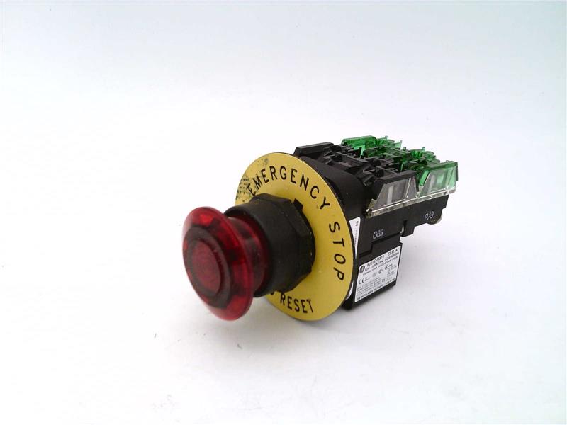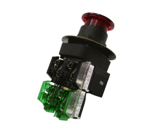 Alternatively Known As: Pushbutton switch, Mushroom head pushbutton, 30mm push-pull switch, Allen-Bradley control switch