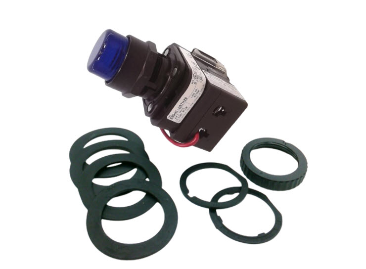 Alternatively Known As: Blue LED Pilot Light, 30mm Indicator Light, Push to Test Pilot Lamp