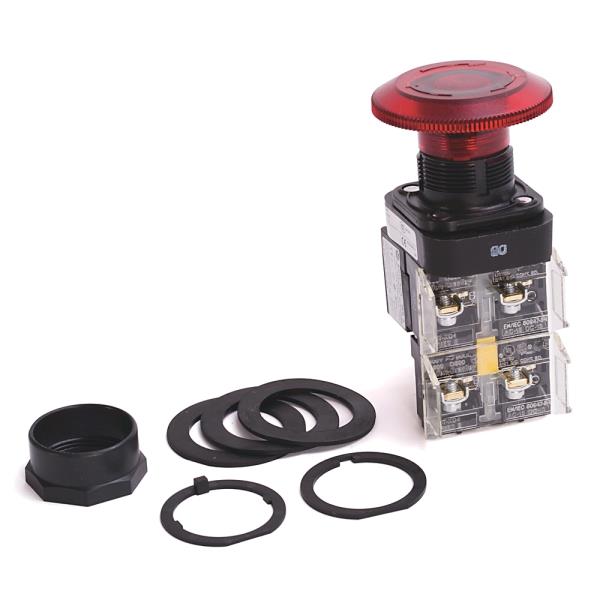 Alternatively Known As: Push-Pull Mushroom Head Pushbutton, 30mm Twist Release Pushbutton, Industrial Control Pushbutton