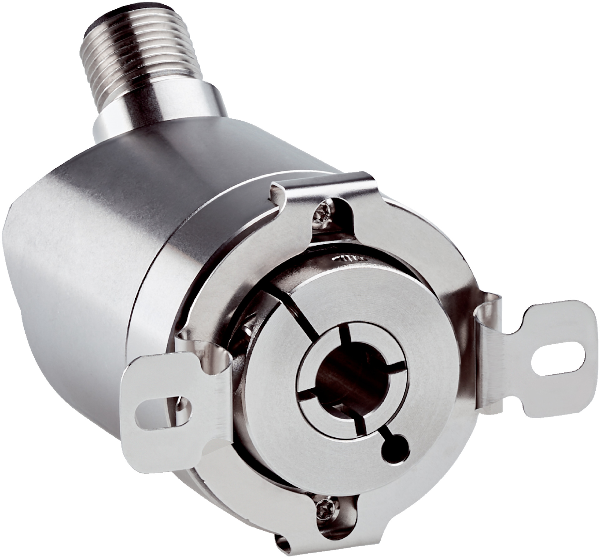 The Blind Hollow Shaft Encoder is designed for industrial automation, featuring a high resolution of 16,384 steps per revolution and an IO-Link V1.1 communication interface. With robust stainless steel construction and IP67/IP69K ratings, it excels in harsh environments, making it ideal for precise position and speed measurement in robotics and machine tool feedback systems.