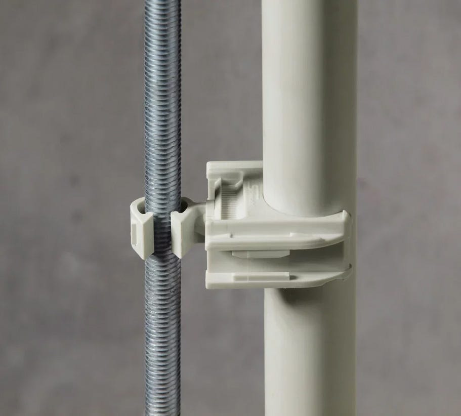 The Caddy Threaded Rod Clip M8-M10 is designed for easy installation of plastic conduit clamps on threaded rods. Compatible with M8 to M10 rods, it supports both parallel and perpendicular conduit orientations, making it ideal for electrical and construction projects. Made from halogen-free and UV-stabilized plastic, this clip ensures durability and compliance with AS/NZS 3000 standards.