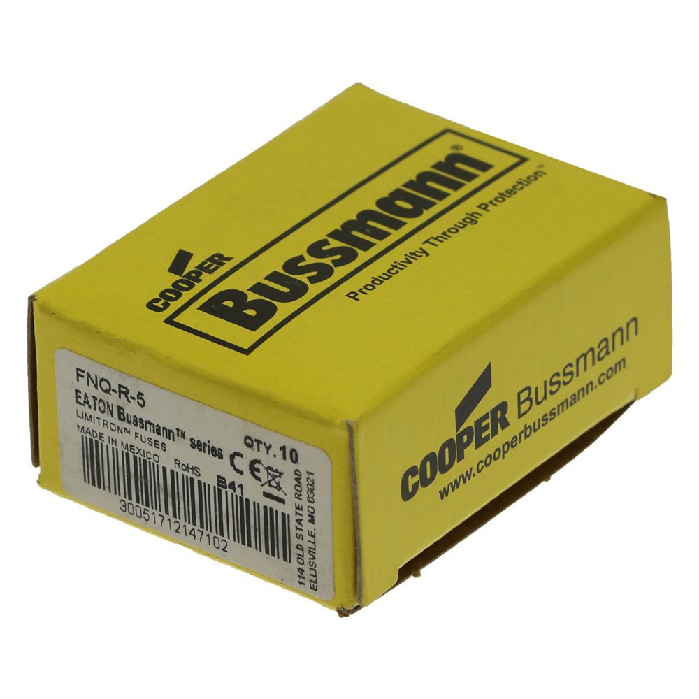 Alternatively Known As: Class CC fuse, Time delay fuse, FNQ-R-5 fuse, Eaton FNQ fuse, Current limiting fuse