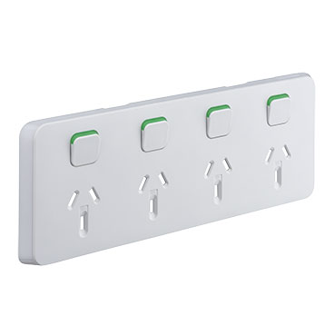 Alternatively Known As: Clipsal Iconic Quad Power Point Cover, 3015/4XXCCY Skin, Clipsal Quad GPO Skin, Iconic Horizontal Quad Skin, Power Point Faceplate