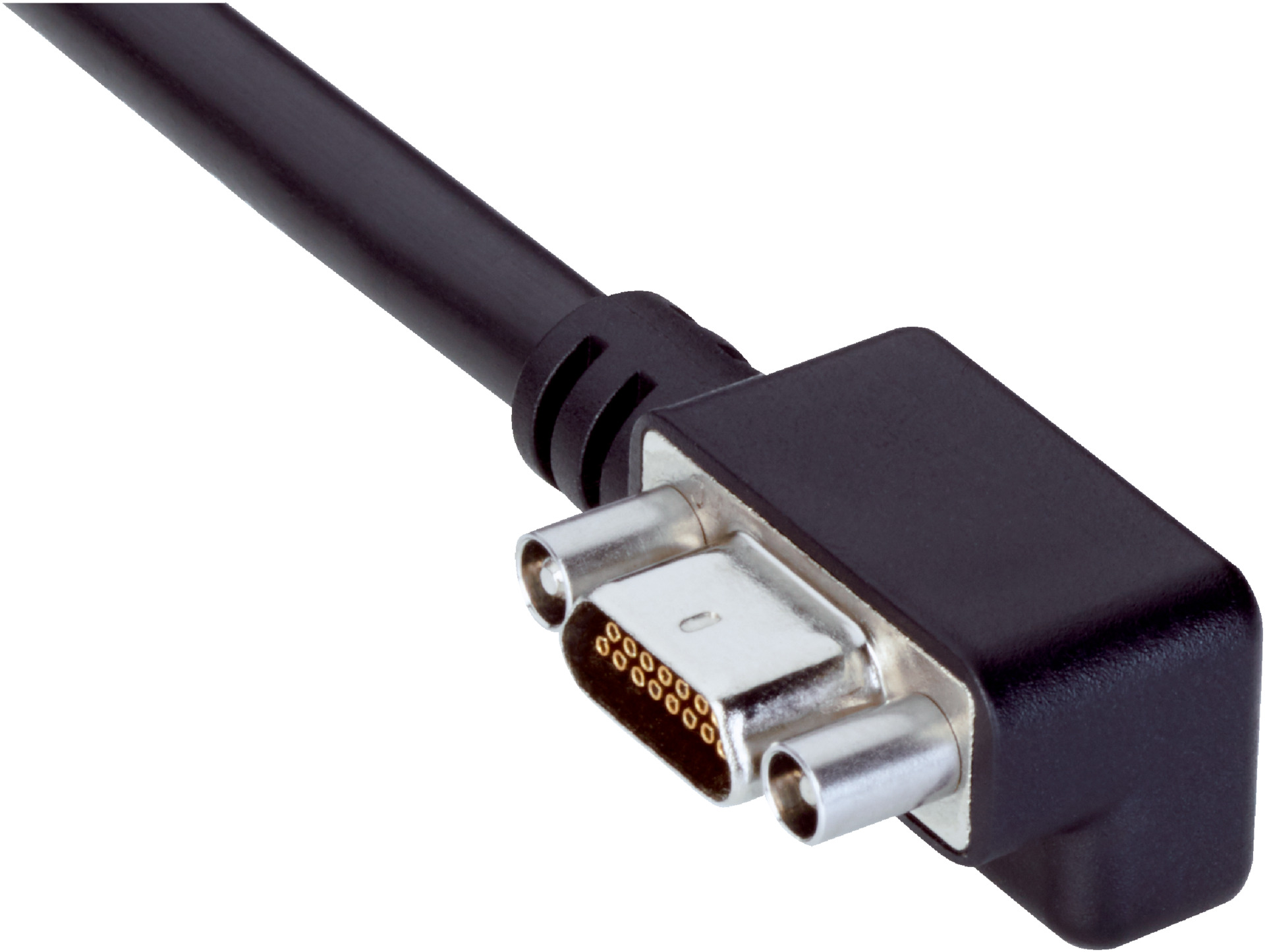 - Male connector, Micro D-Sub, 15-pin, angled for secure connection