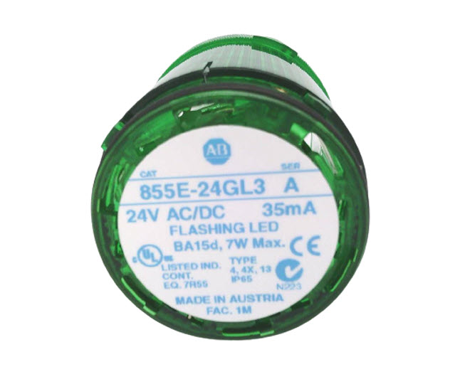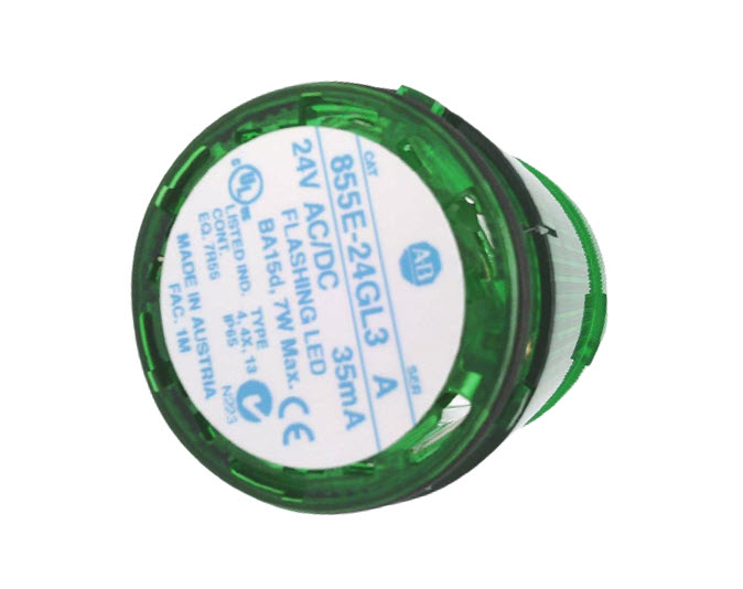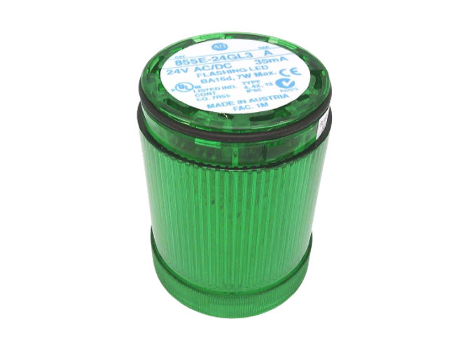 Product Name/Title: Allen-Bradley 855E24GL3 Control Tower Stack Light 50mm Green Flashing LED