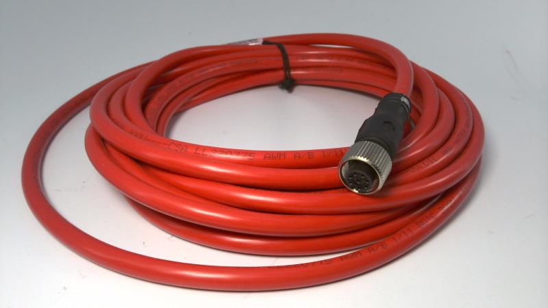 DC Micro M12 Female Straight 8-Pin Connection Cable | PVC Insulated | 5m Length | Red Color | by Allen-Bradley