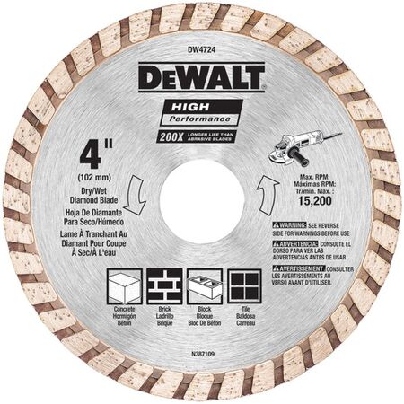 Alternatively Known As: Diamond Masonry Cutting Disc, Turbo Diamond Blade, 100mm Masonry Cutting Wheel, DEWDW4724, Diamond Angle Grinder Blade