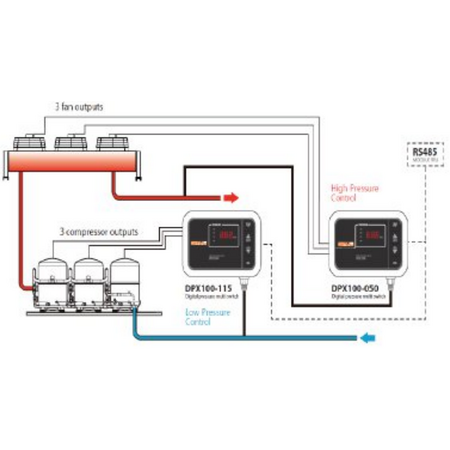 The DPX100 Step Controller is a 3-stage digital rack controller designed for precise pressure control in refrigeration and HVAC systems. With features like balanced rotational selection and adjustable delay times, it optimizes compressor operation for enhanced efficiency. Ideal for industrial and commercial applications, this controller ensures real-time monitoring and easy setup for professional installation.