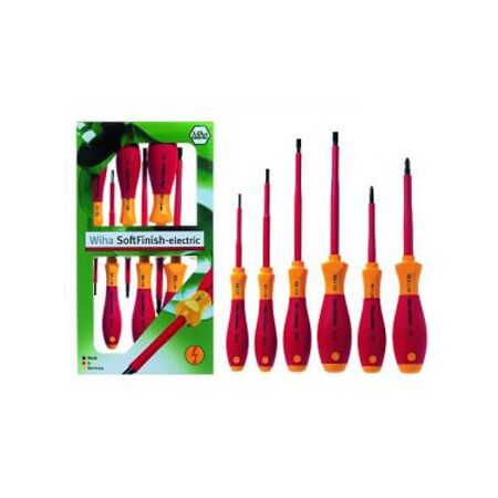 Electric screwdriver set with 1,000V insulation and SoftFinish ergonomic grip—ideal for electrical installations and repairs. Built for professional electricians and DIY users, with durable chrome vanadium steel blades for precision and strength.