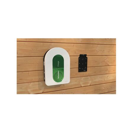 Electric vehicle charging station with 7.4/11/22kW output and wall-mounted design—ideal for residential and commercial use. Built for safety with earth-leakage protection and IP55 rating, compatible with Schneider Electric Wiser app.
