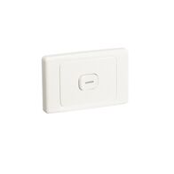 Push-button switch with 230/240V and 16A/10AX rating—ideal for homes and offices. Built for easy operation, with a compact design and modern white finish.