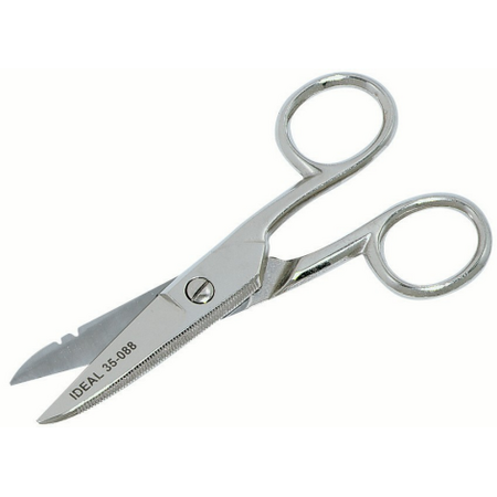 Electrician’s Scissors | 5.5 Inch Length | Nickel Plated Steel | Serrated Edges by Ideal Electrical