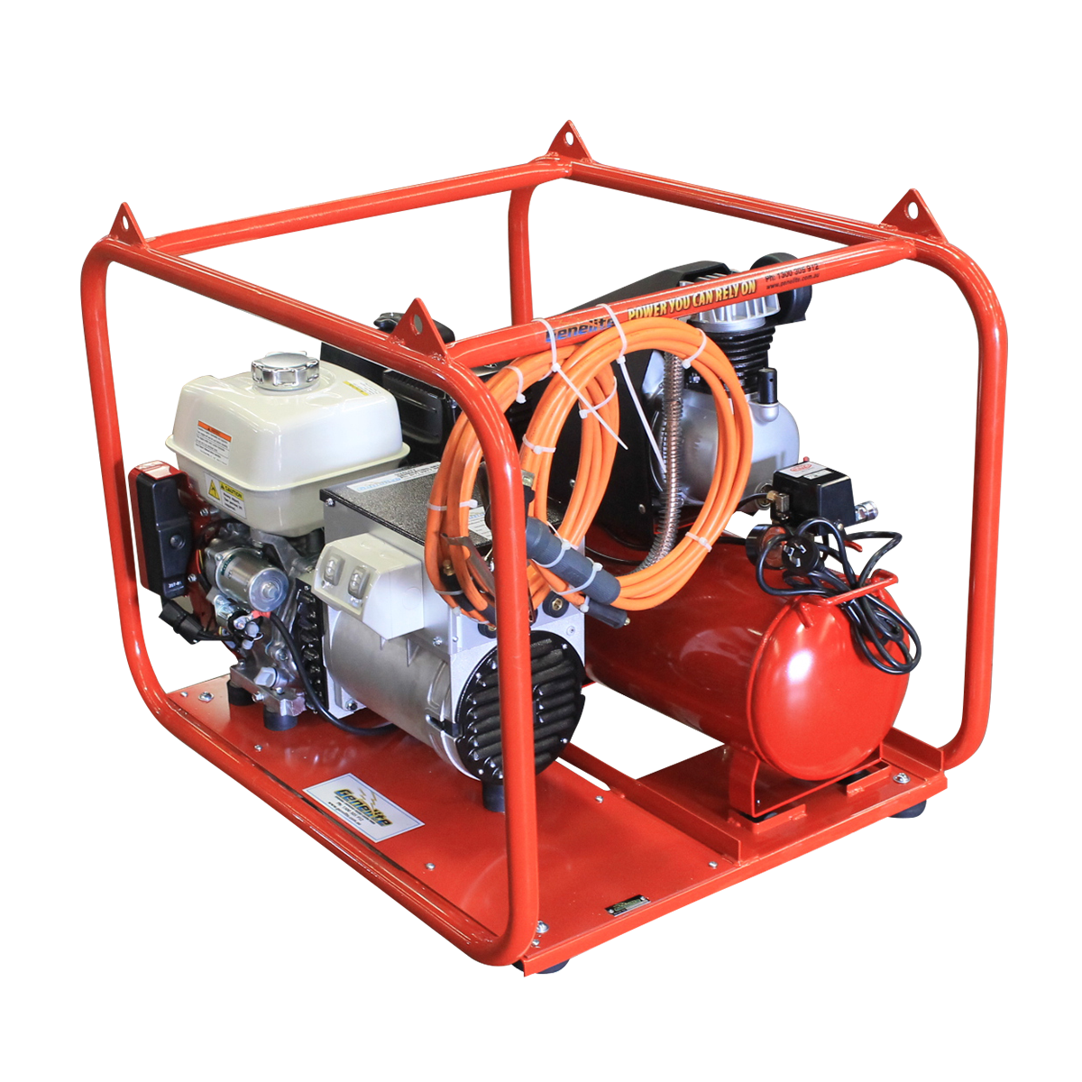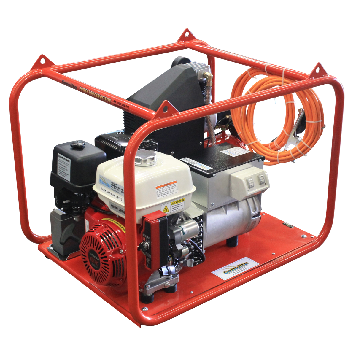 The Honda GX390E Welder is designed for welding and metal fabrication work, featuring a reliable Honda GX 390 engine with low oil protection and heavy-duty anti-vibration mounts. Ideal for construction and industrial sites, this welder ensures optimal performance and safety, making it a perfect choice for maintenance and repair workshops.