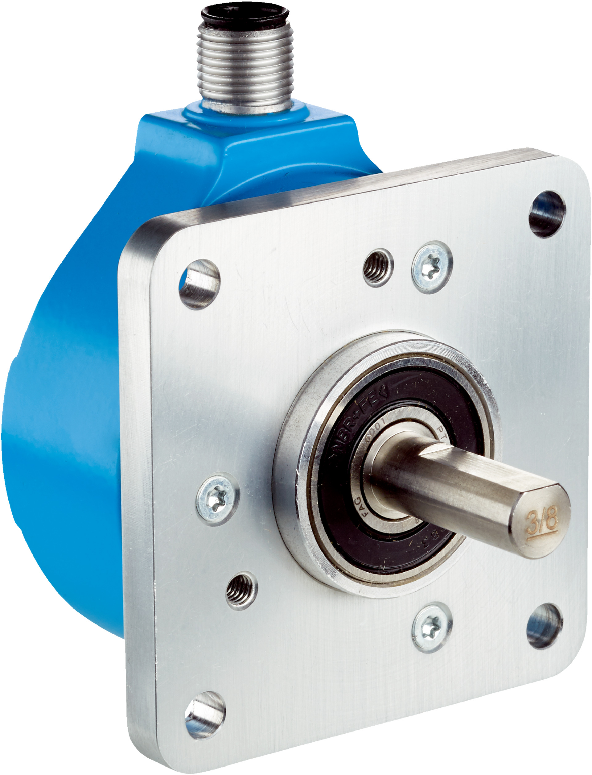 - Robust mechanical design with solid shaft and square flange