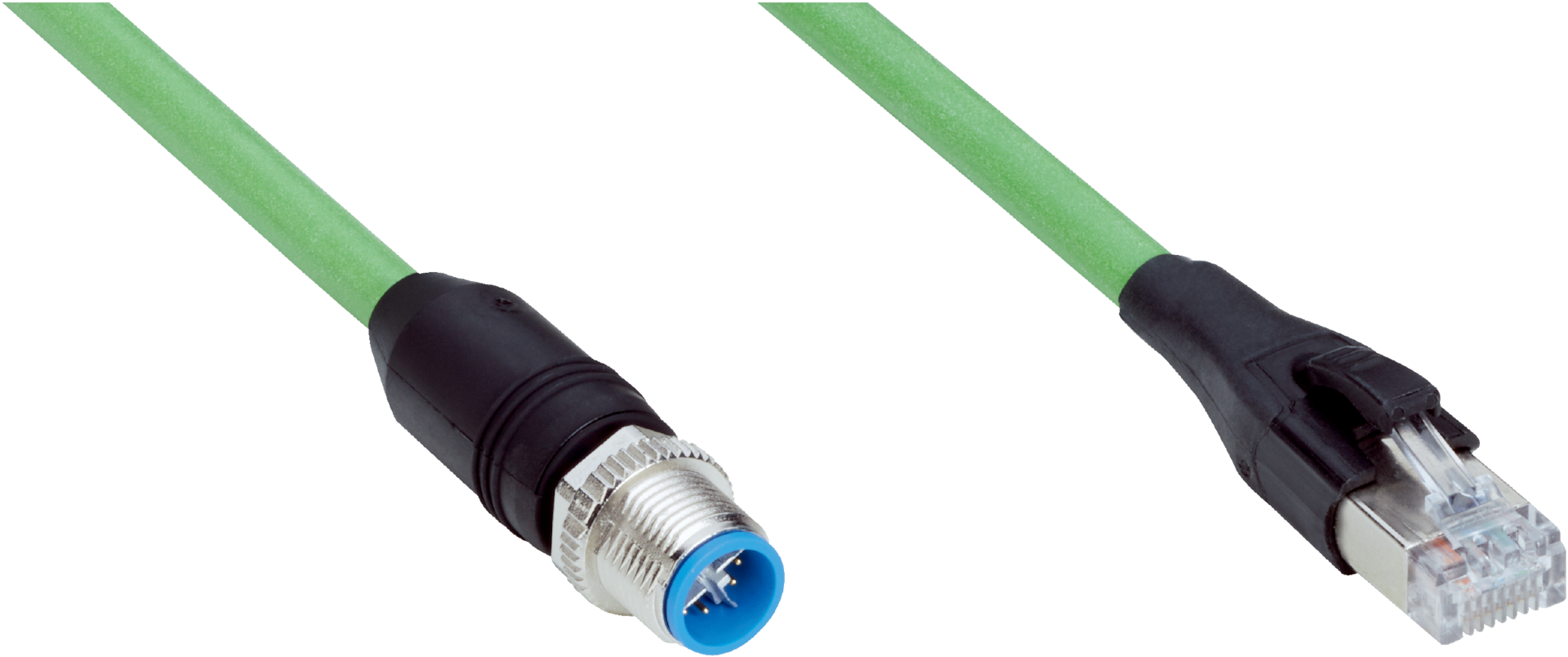 - Male M12 8-pin X-coded connector and male RJ45 8-pin connector