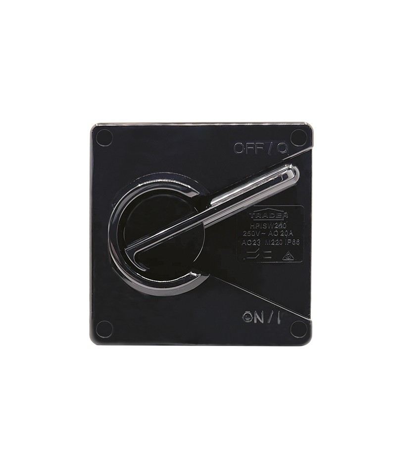 The Trader Isolator Switch Weatherproof IP66 40A 250V 2 Pole Small Black is available for immediate purchase, ideal for electrical isolation in residential, commercial, and industrial settings.