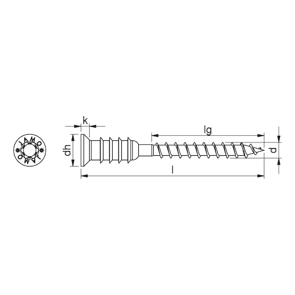 - Excellent anchoring in wood due to asymmetrical thread flanks