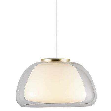Jelly pendant light with E27 bulb base and art deco style—ideal for dining rooms and cafés. Built for elegance, with a brass top and opal inner shade for warm, soft lighting.