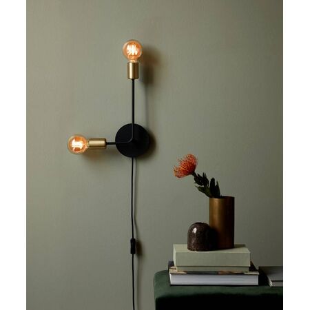 Josefine wall light with 2 E27 bulb bases and matte black finish—ideal for modern residential and commercial interiors. Built for decorative lighting, with an industrial design and customizable expression using decorative bulbs.