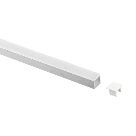 LED strip channel with 16mm x 16mm dimensions and anodized silver finish—ideal for creative residential and commercial interiors. Built for sleek design, with opal polycarbonate diffuser and supplied end caps.