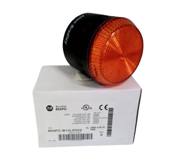 The Allen-Bradley 855PCB10LE522 Light and Sound Combination Alarm is available for immediate purchase, ideal for industrial and manufacturing safety alert applications.