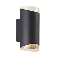 Outdoor up/down wall light with double GU10 sockets and IP44 rating—ideal for driveways, garages, and entrances. Built for stylish illumination, with a durable black finish and easy installation.