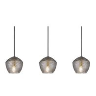 Art deco pendant light with smoked glass and brushed brass—ideal for dining rooms and kitchen islands. Built for stylish illumination, with three lamp heads and dimmable functionality for ambiance control.