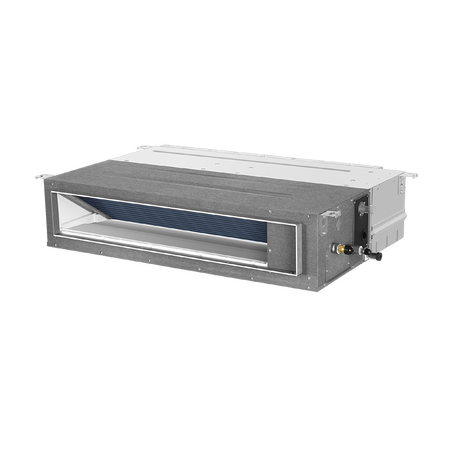 Low profile ducted air conditioner with 12kW cooling capacity and R32 refrigerant—ideal for homes and offices. Built for energy efficiency, with a sleek design and low noise operation.