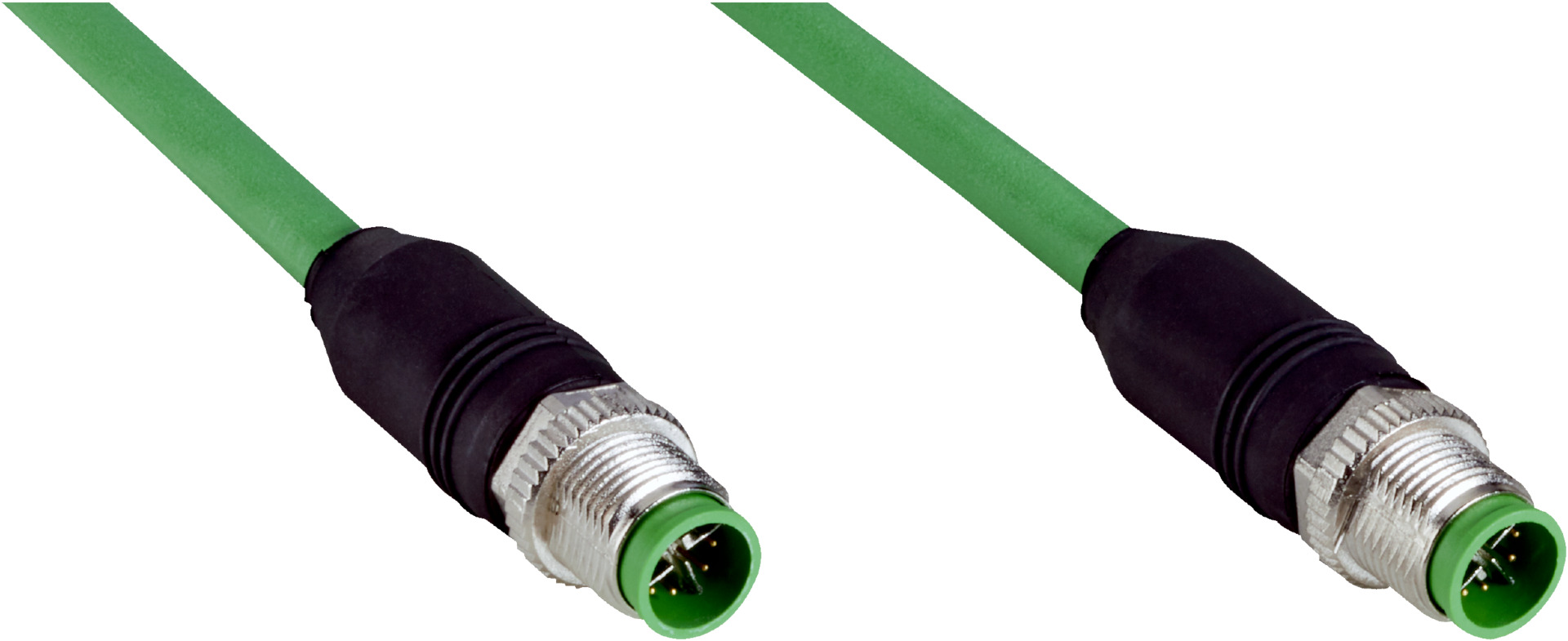 - Male M12, 8-pin, straight, X-coded connectors on both ends