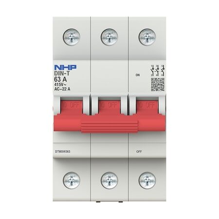 The NHP DIN-T Main Switch 3 Pole 63A is available now for immediate purchase. Ideal for industrial and residential power distribution.