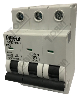 Product Name/Title: MCB EUREKA 3 Pole 50A C Curve Circuit Breaker | 6kA Breaking Capacity | by Tobin