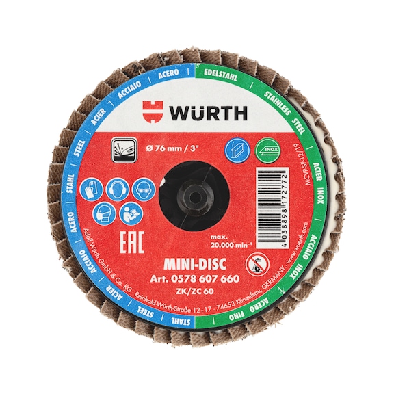 Mini Flap Disc 76mm | Zirconium Abrasive | 20,000 RPM | by Wurth