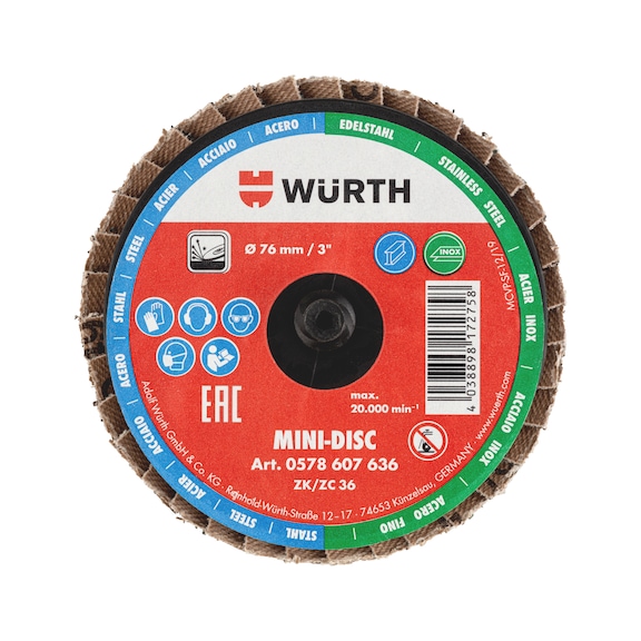 Mini Flap Disc 76mm | Zirconium Corundum | 20,000 RPM | by Wurth