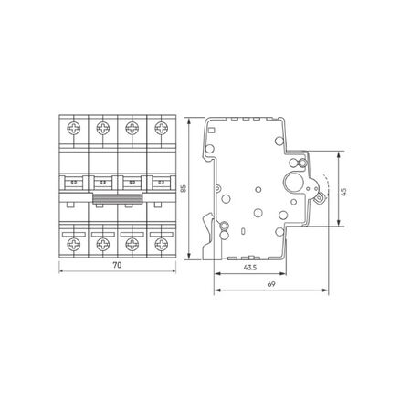 - Rated Short Circuit Breaking Capacity: 10 kA at 230 VAC, 10 kA at 400 VAC