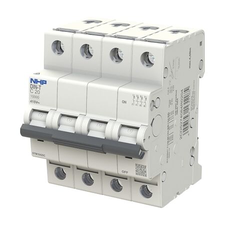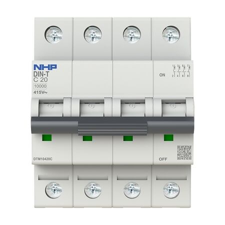 The NHP DIN-T Miniature Circuit Breaker MCB 10kA 4 Pole 20A C Curve is available now for immediate purchase. Ideal for residential and commercial electrical installations.