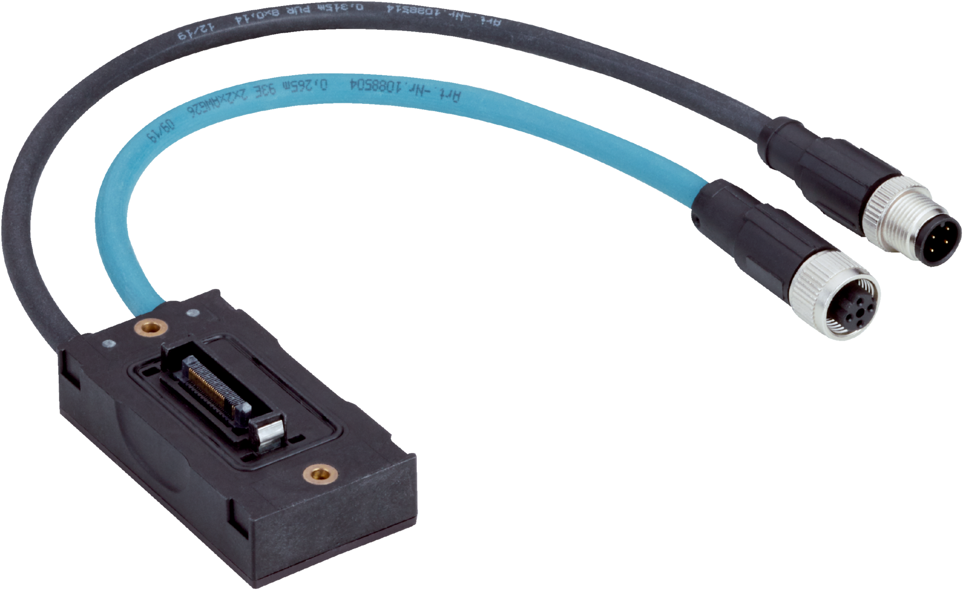 - Ethernet connection via 250 mm cable with M12 female connector, 4-pin, D-coded