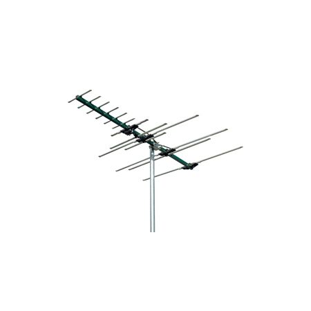 Outdoor VHF/UHF antenna with 13 elements and reliable digital TV reception—ideal for residential and rural installations. Built for long-range signal reception, with a weather-resistant design and lightweight aluminum construction.
