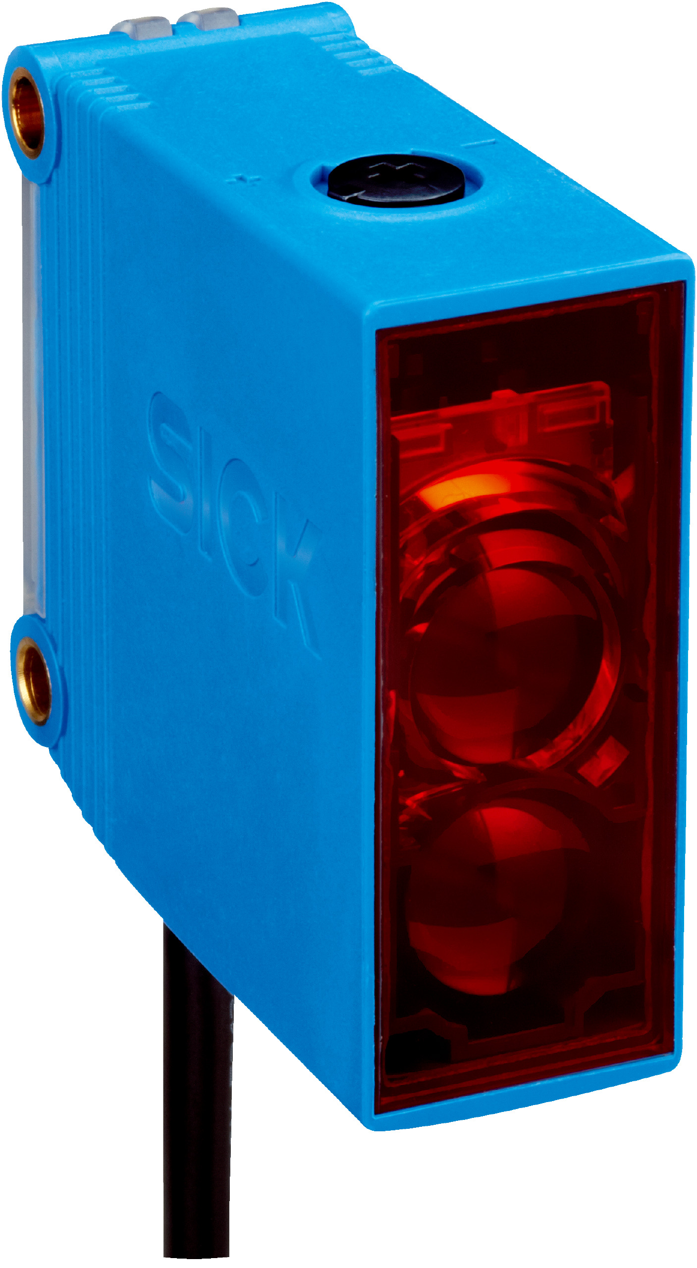 - Photoelectric retro-reflective sensor with dual lens system for minimum distance to reflector