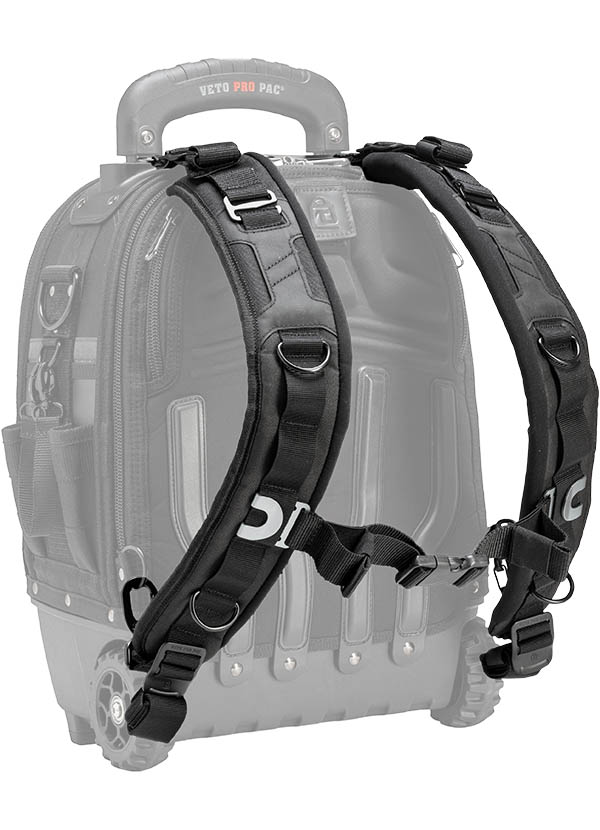 Premium removable backpack straps designed for enhanced comfort and durability. These detachable black straps feature extra padding, making them ideal for carrying light or heavy loads. Compatible with various Veto Pro Pac models, they allow for easy attachment and detachment, extending the life of your backpack without the need for full replacements.