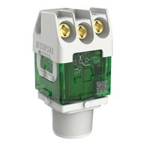 Modular push button with 12-48V AC/DC range and green LED indicator—ideal for small commercial and residential circuits. Built for easy installation, with staggered terminals and durable design.