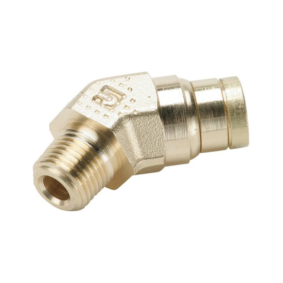 Alternatively Known As: Push-in fitting, Pneumatic connector, Brass elbow connector, 45 degree push-in fitting