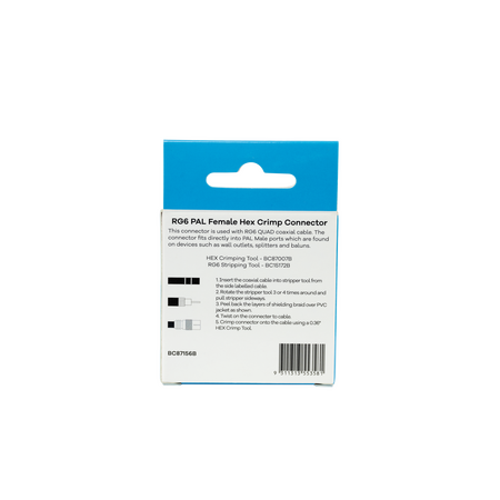 The Hills Antenna BC87156B RG6 PAL Female Hex Crimp Connector 2-Pack is available now for immediate purchase. Ideal for connecting RG6 cables in various settings.