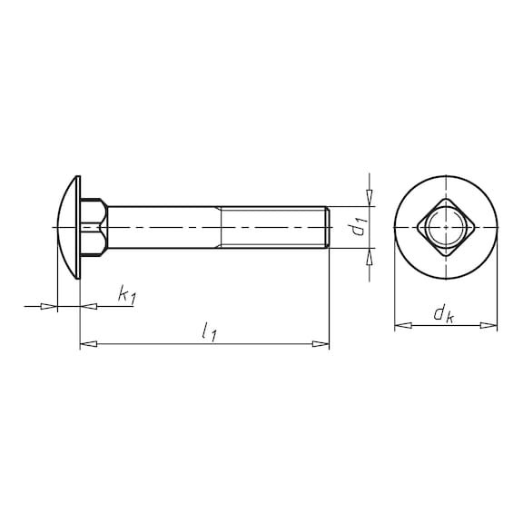 - Flat square neck fixes the round head screw in a slot to prevent rotation