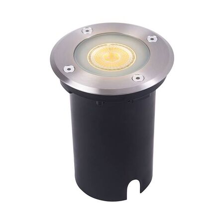 Round recessed light with GU10 base and IP67 rating—ideal for outdoor driveways, walkways, and gardens. Built for durability, with stainless steel finish and dimmable capability when using a dimmable bulb.