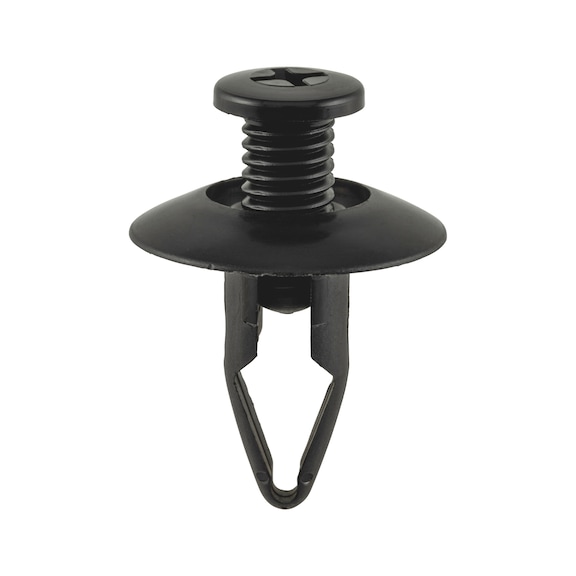 Screw rivet tapers downwards with adjustable installation, perfect for automotive bodywork fastening and repair. Made from durable black polyamide, these rivets form adjustable systems that can be easily loosened, ensuring a secure fit for Mazda vehicles. Ideal for professional installation, they offer a reliable solution for vehicle assembly and maintenance.